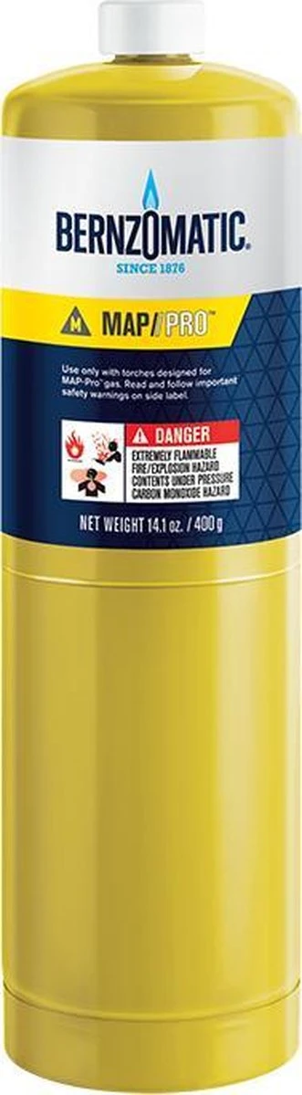 De Bernzomatic wegwerp cilinder / gaspatroon met 400 gram MAP-Pro™. Is geschikt voor alle Bernzomatic branders met een MAP-PRO logo. Meest geschikt voor hardsolderen of het verhitten in verkorte tijd.