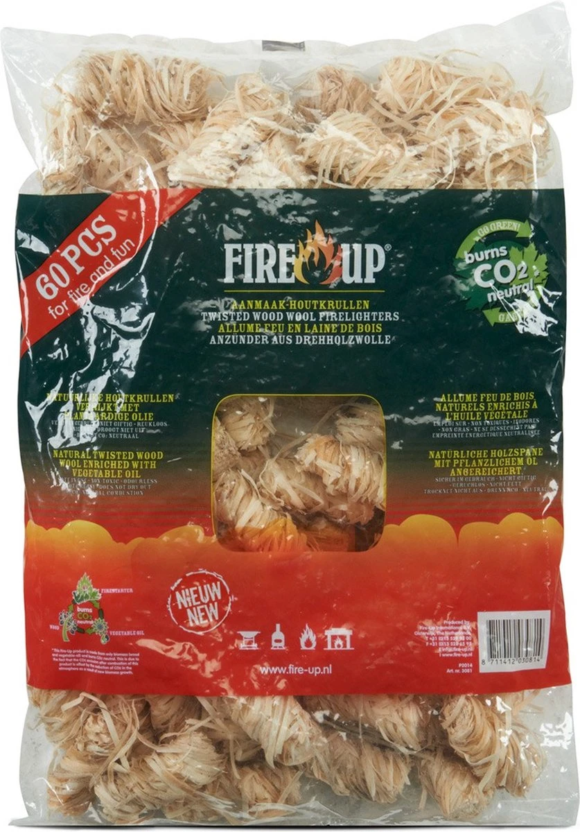 Fire Up Aanmaak houtwol – 2 zakken van 60 stuks dus 120 stuks!